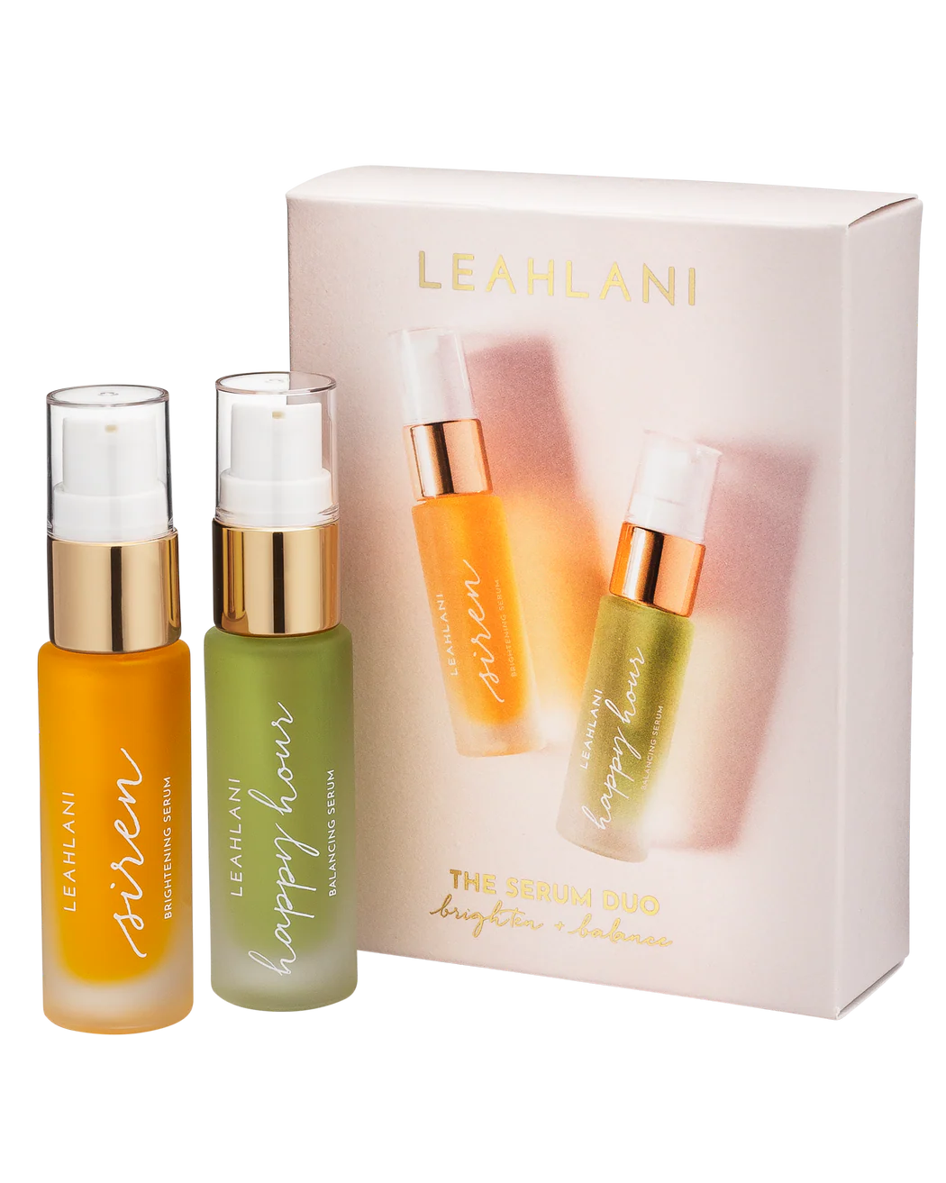 Our superstar Happy Hour + Siren Serum Duo works double-time to calm, brighten and balance the skin, unveiling your most brilliant, even-toned complexion. Happy Hour gently calms and balances irritated, stressed-out skin, while Siren brightens and refreshes for glowing vitality, leaving skin with a radiant aloha glow.