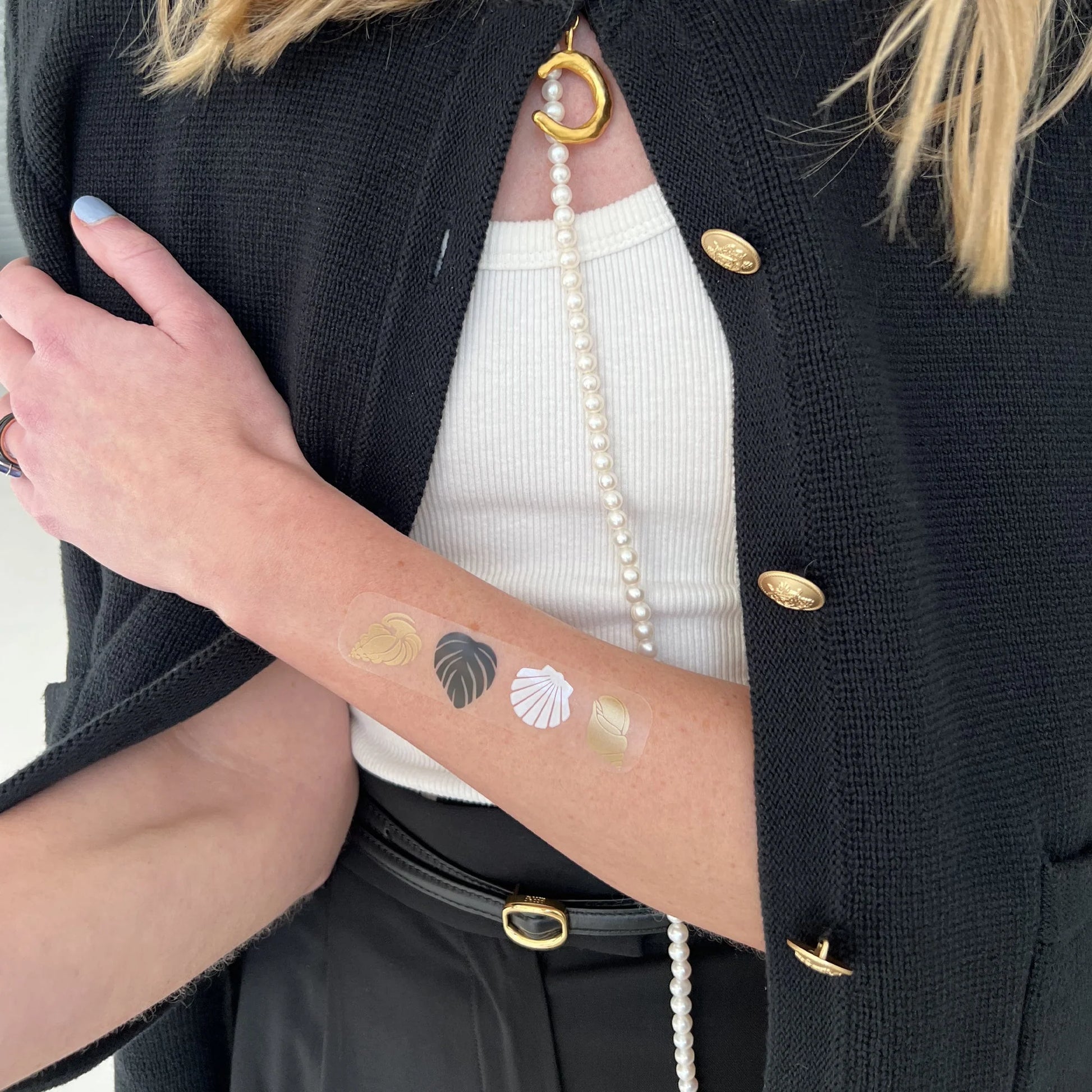 This pack includes 6 patches. Each patch features its own unique collage of abstract shapes rendered in a combination of black, white and metallic colorways on a clear backing made from 100% recycled PET.